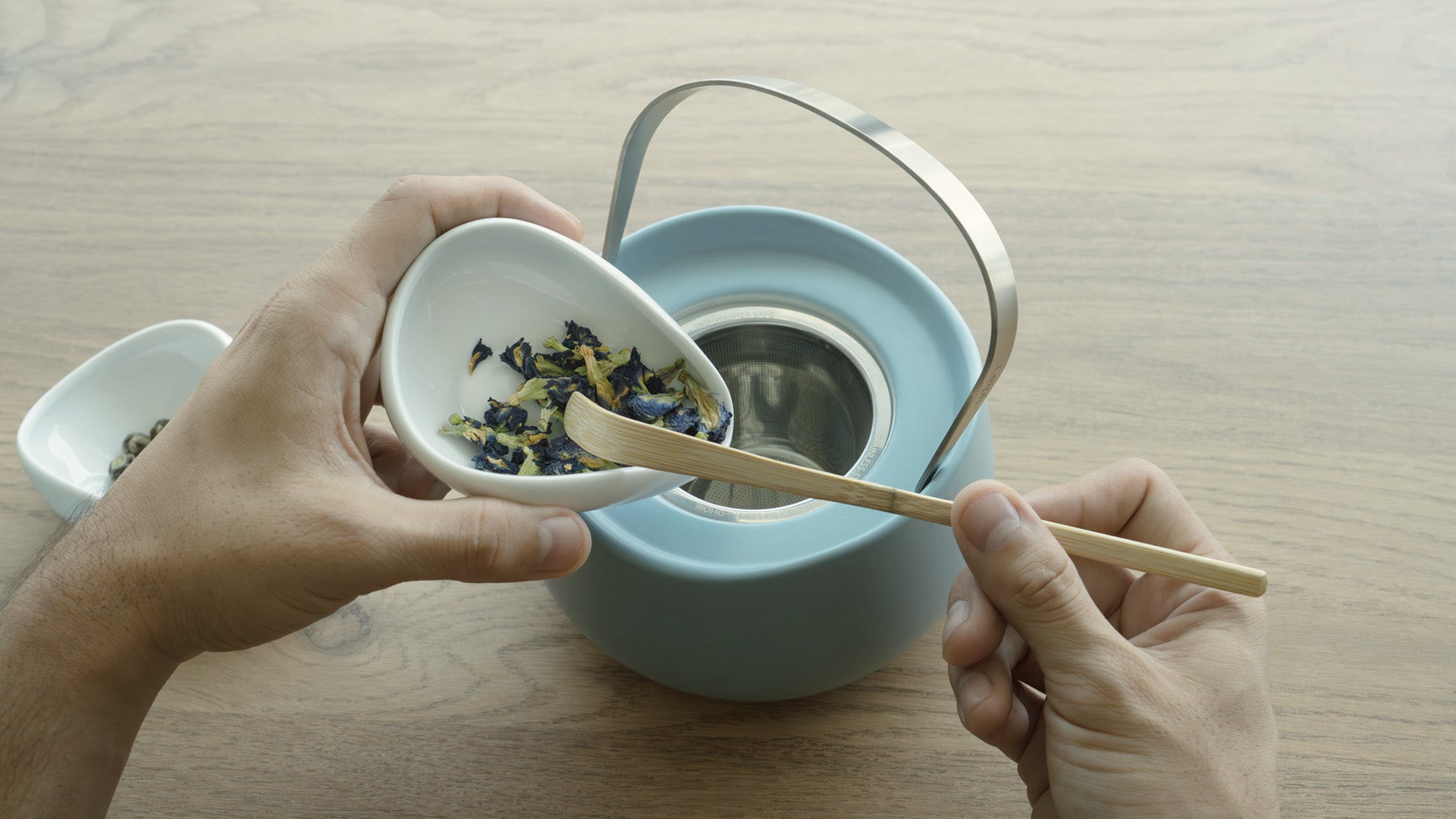 - Add 1 teaspoon of butterfly pea flower to the Leiph.