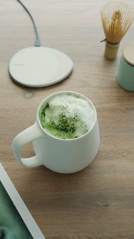 - Pour the prepared matcha into the Ui or Ui+ mug.