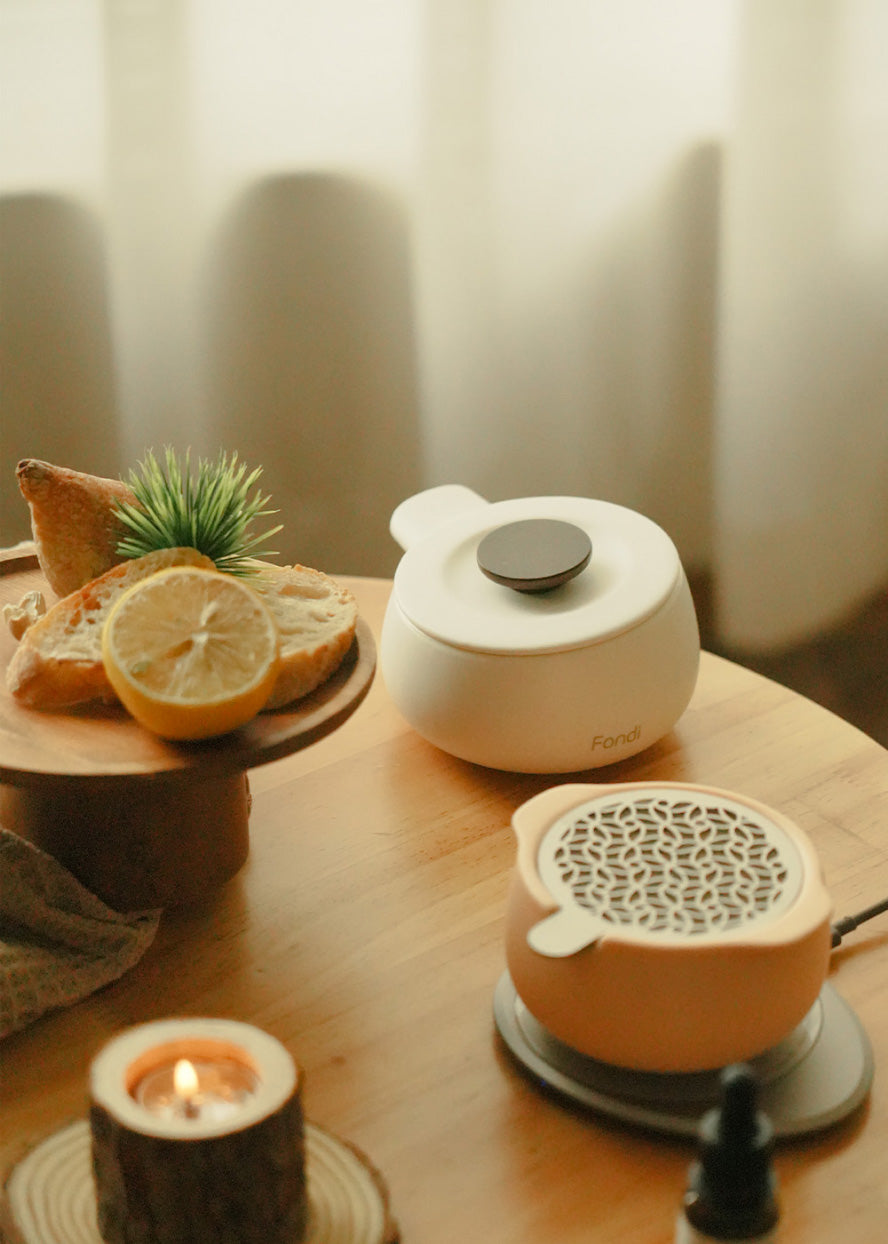 With its fine ceramic build, the Fondi self-heating fondue set melts cheese, chocolate or butter to perfection, creating a luxurious, velvety delight. Whether you’re pairing it with fresh bread, ripe fruits, or crunchy chips, the Fondi ensures your fondue stays melted from the first dip to the last.