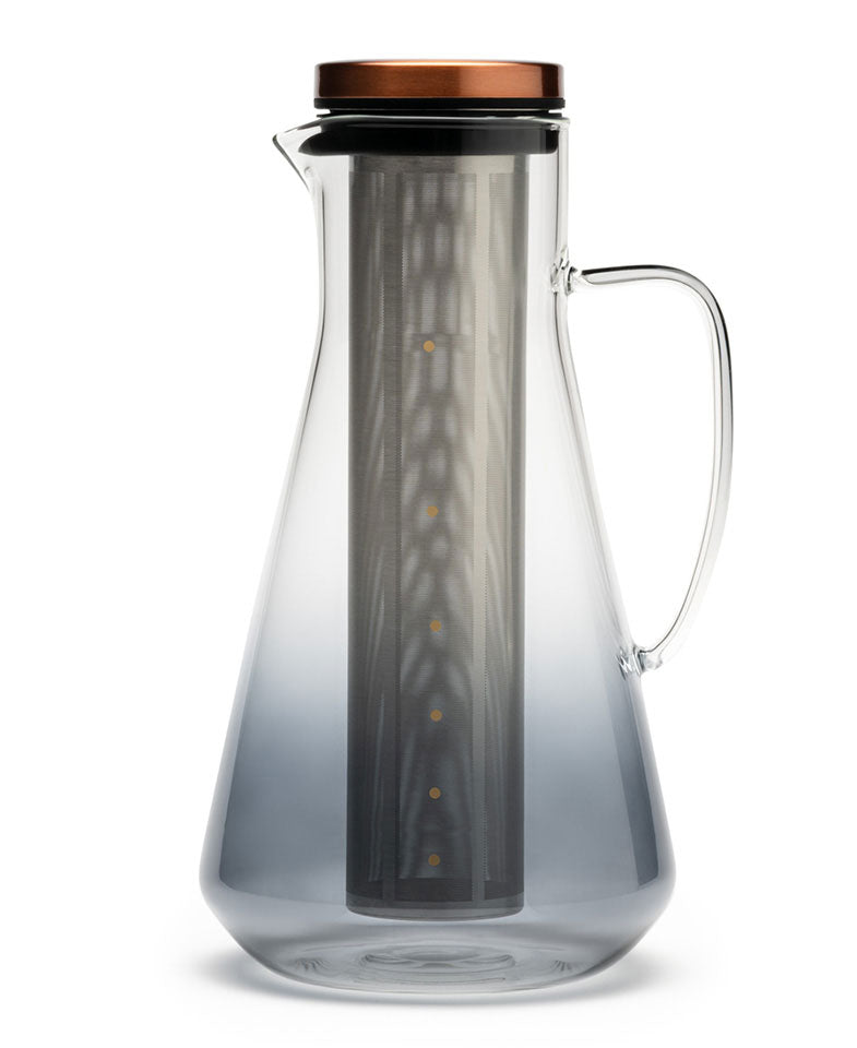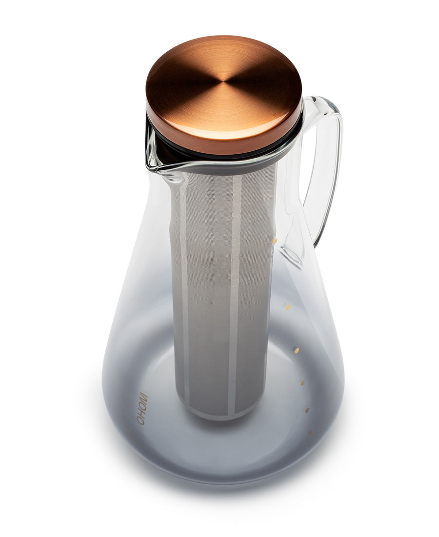 Boasting a generous capacity of 54 fl oz (1600 ml), the Sio Cold-Infusion Pitcher ensures you have refreshing beverages throughout the day. Crafted from laboratory-grade borosilicate glass and adorned with a smoky gradient finish, this pitcher is set to redefine your drinking moments. The copper-plated lid, complemented by copper volume indicators, adds a harmonious touch of elegance to the ensemble.