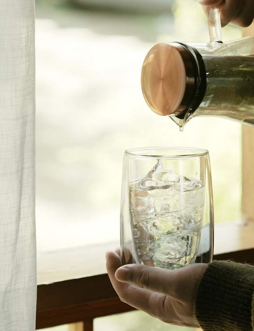 The Sio Dual-Wall Glass is the perfect companion for the Sio Cold Infusion Pitcher. Aesthetically, the transparent dual layer creates a unique visual appearance as the liquid appears to float inside the glass. Each glass is hand-crafted by our artisan glassblowers using fine quality borosilicate glass. The simple and elegant design of the Sio Dual-Wall Glass blends to any modern tabletop environment, making them the perfect glass for every occasion.